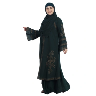 Humeira Abaya Dubai Style Front Open Shirak Abaya with 3 layer Sleeves and White Nug Work - 54, 300 gms