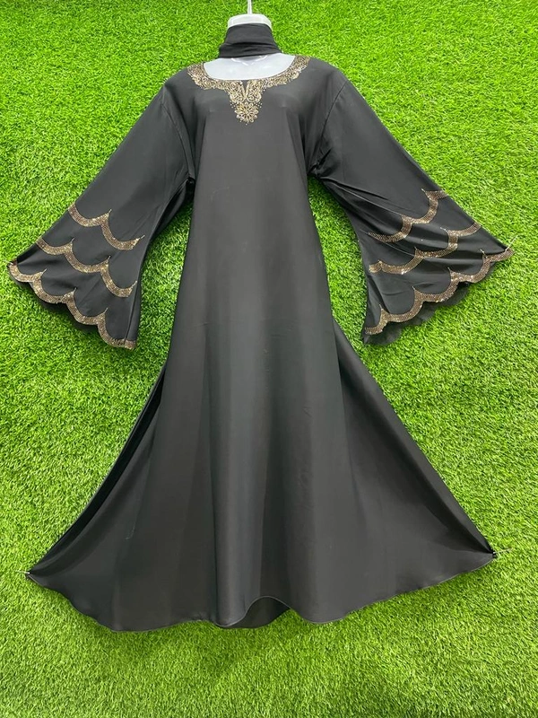 Humeira Abaya 3 Layer Golden Sleeves Abaya in Al Nida Fabric With MS Stone Work