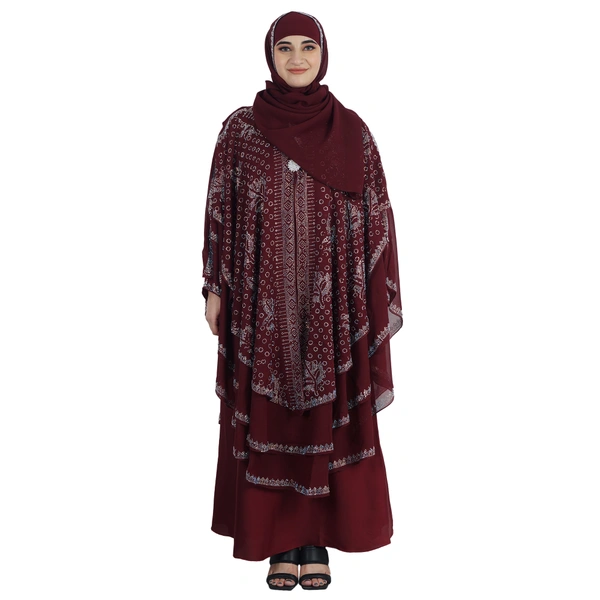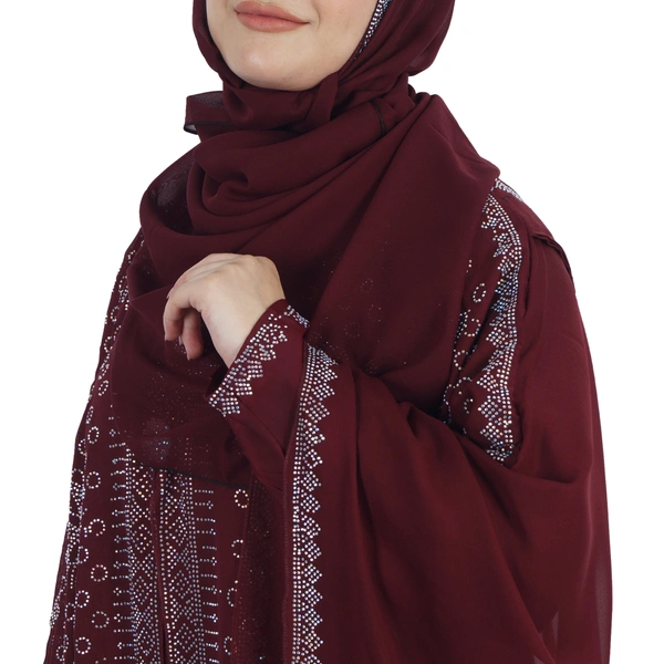 Humeira Abaya 3 Layer M S Stone Work Heavy Abaya for Bridal in Al Nida Fabric with Self atteched & Extra Dupatta