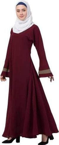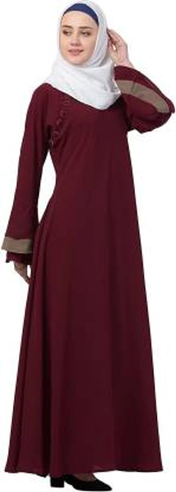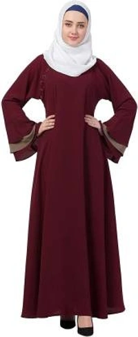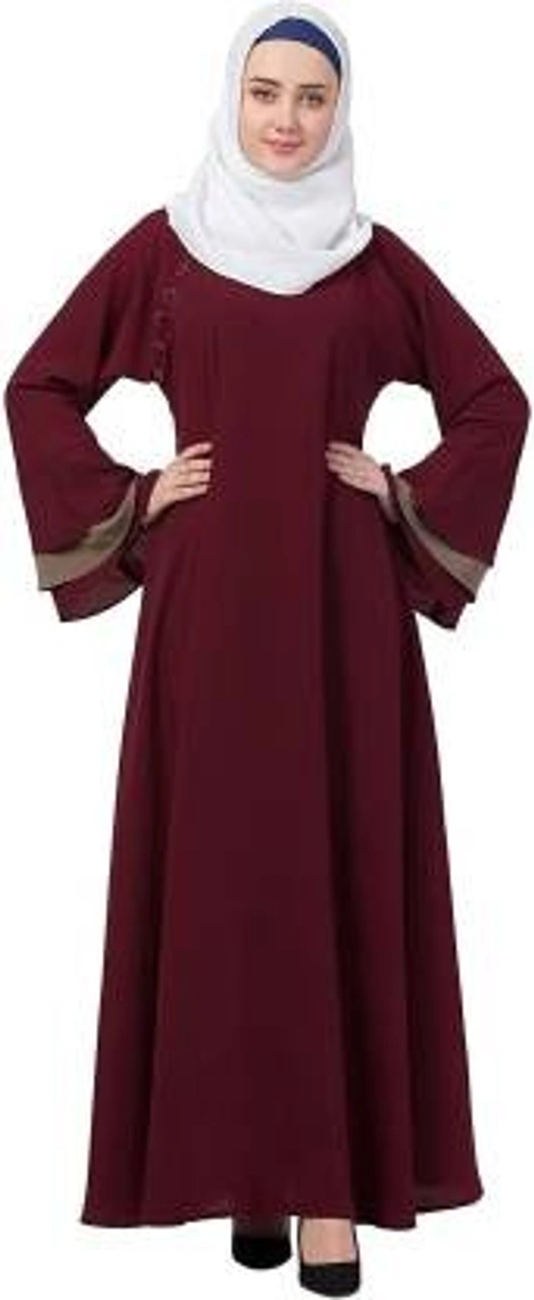 Humeira Abaya Branded Dubai Style Simple Neck Button Abaya in Al Nida Fabric (Maroon)