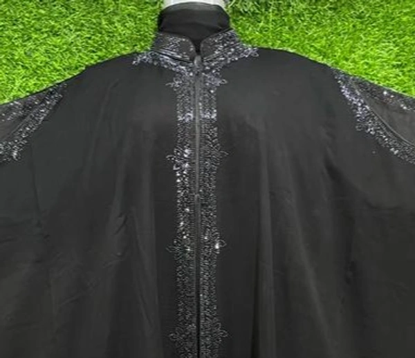 Humeira Abaya Cut Sleeves Farasha in Black Colour Stone & Fabric