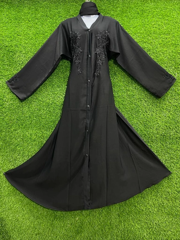 Humeira Abaya Double Side Front Open Hand Work Buta Abaya in Al Nida Fabric