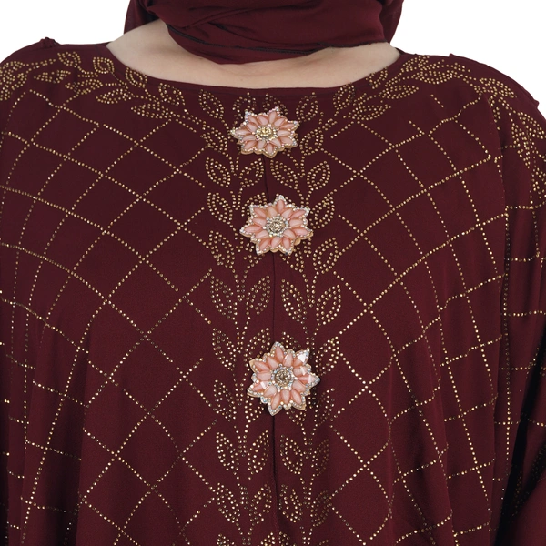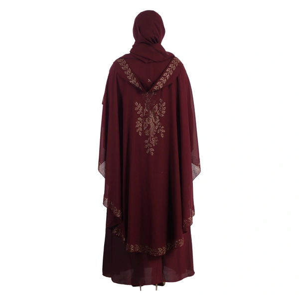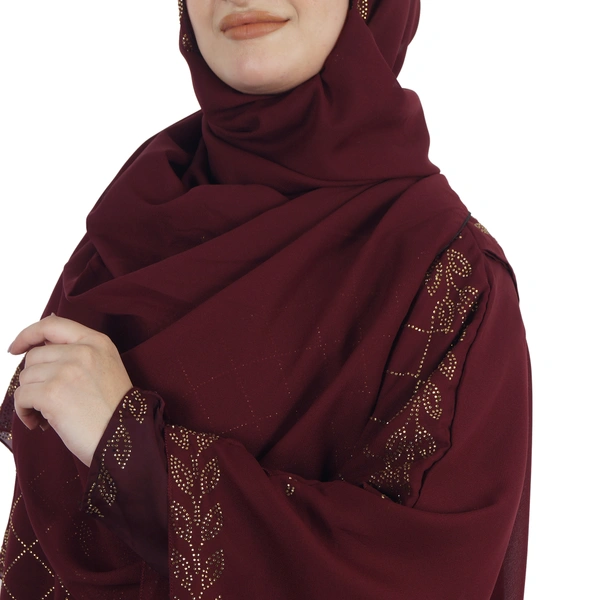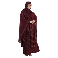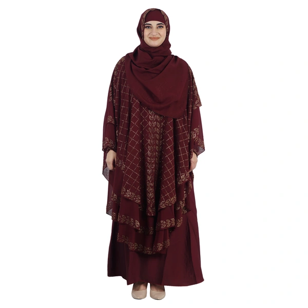 Humeira Abaya Dubai Style 3 Layer Heavy Stone Work Farasha in Al Nida Fabric With Self Atteched & Extra Dupatta