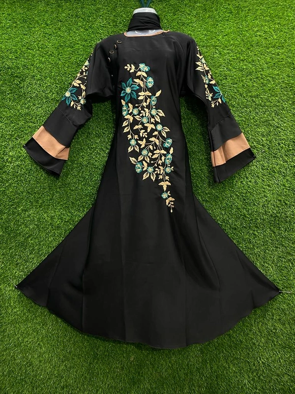 Humeira Abaya Dubai Style 3 Layer Multi Color Embroidery Buta Abaya/burkha in Al Nida Fabric
