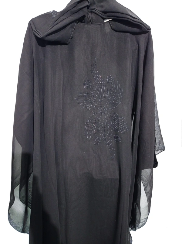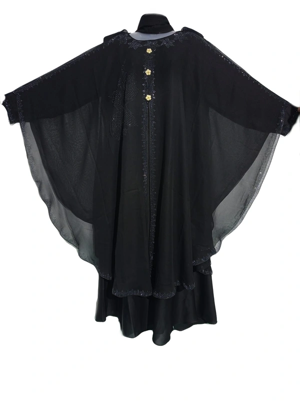 Humeira Abaya Dubai Style Beautiful Black Color Star Farasha in Al Nida Fabric PP Stone Work