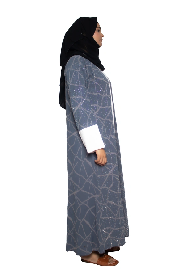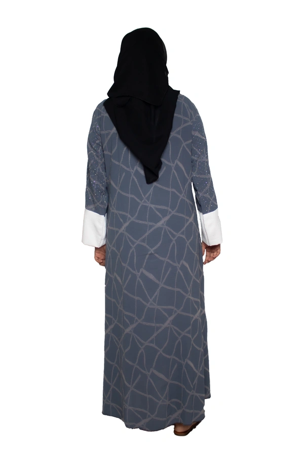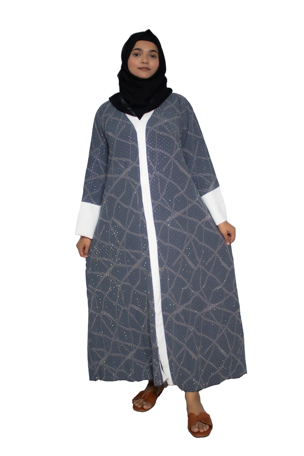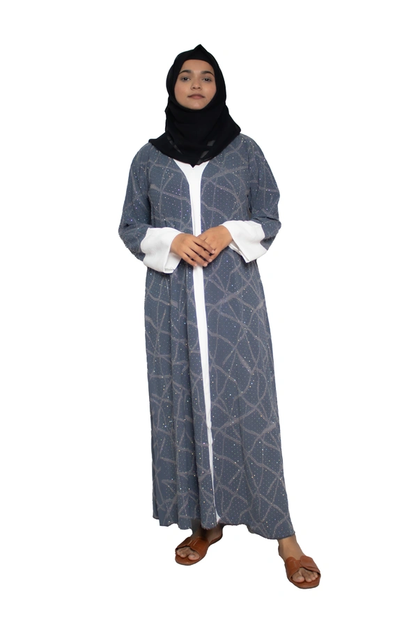 Humeira Abaya Dubai Style Embroidery Abaya Burkha in Premium Crush Fabric Front Open Crush Grey Colour
