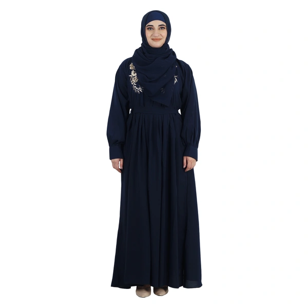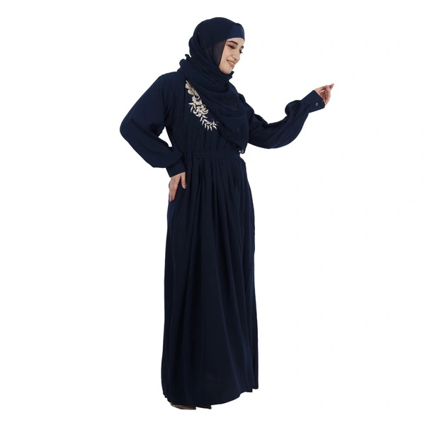Humeira Abaya Dubai Style Front Double Side Embroidery Work Beautiful Abaya in Al Firdous Fabric