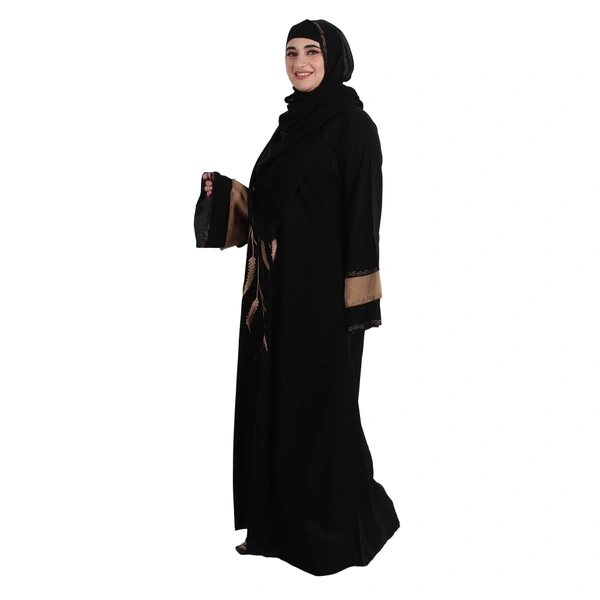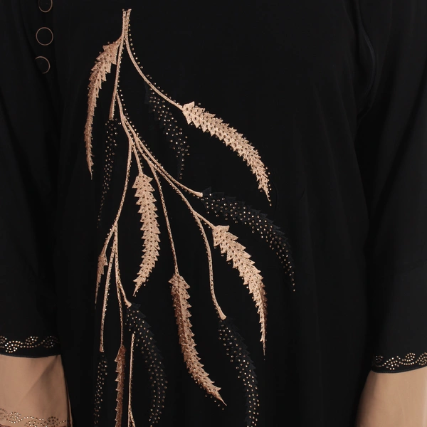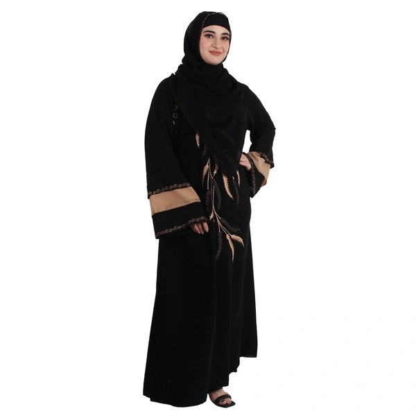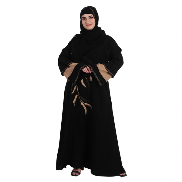 Humeira Abaya Dubai Style Front Leaf Embroidery Beautiful Abaya in Al Firdous Fabric