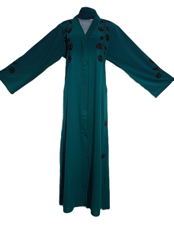 Humeira Abaya Dubai Style Front Open Firozi Color Tree Style Abaya in Al Firdous Fabric