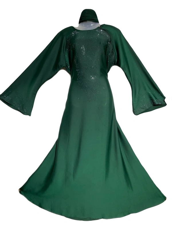 Dubai Style Green Color Simple Abaya in Al Nida Fabric With DMC Stone Work