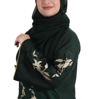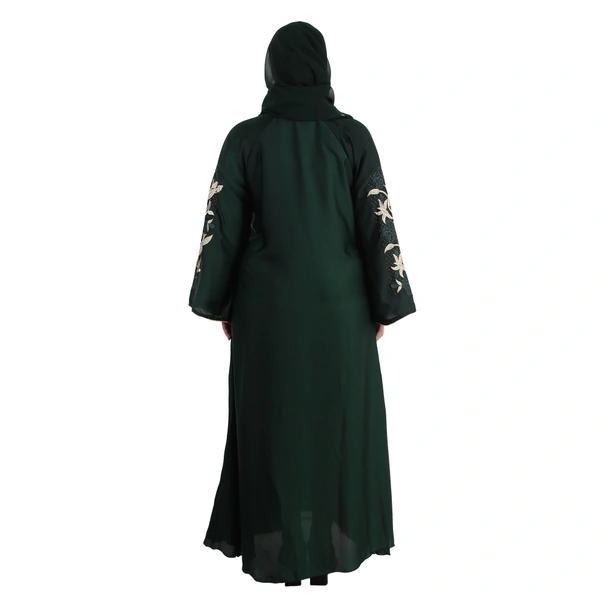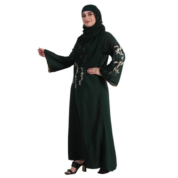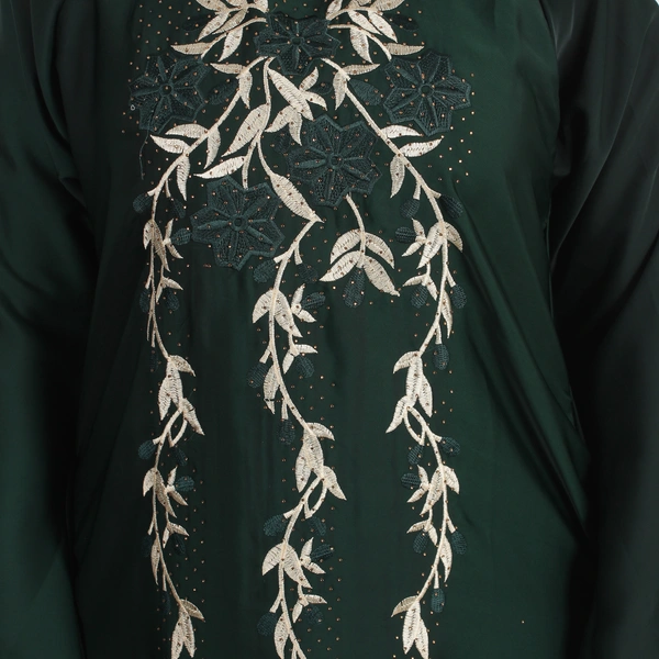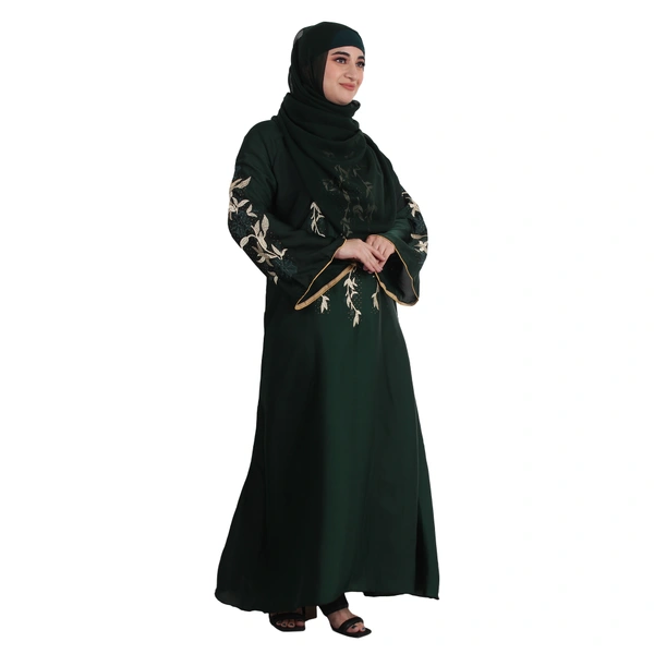 Humeira Abaya Dubai Style Green Leaf Embroidery & Stone Work Abaya in Al Nida Fabric