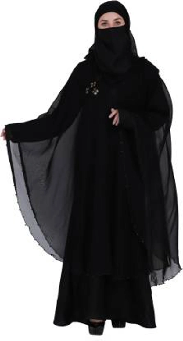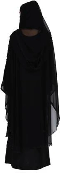 Dubai Style Moti Farasha Abaya in Black Color With Pearl Work on Front in Al Nida Fabric