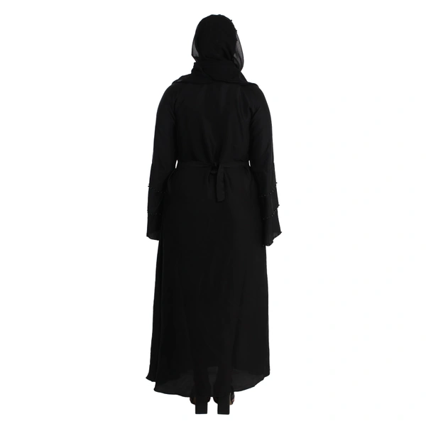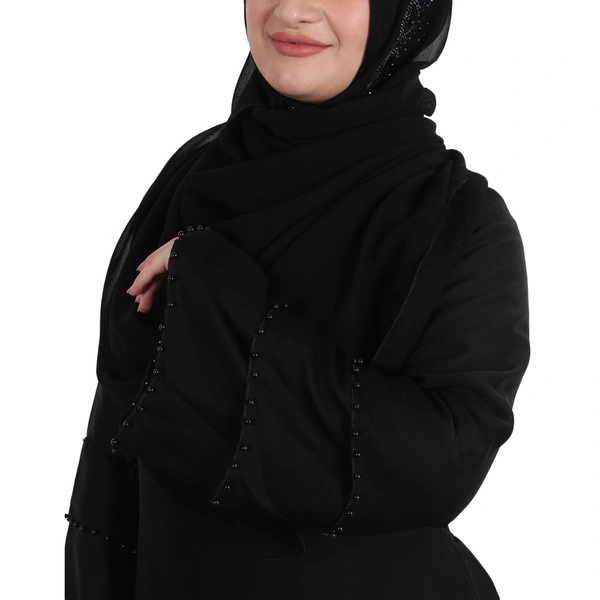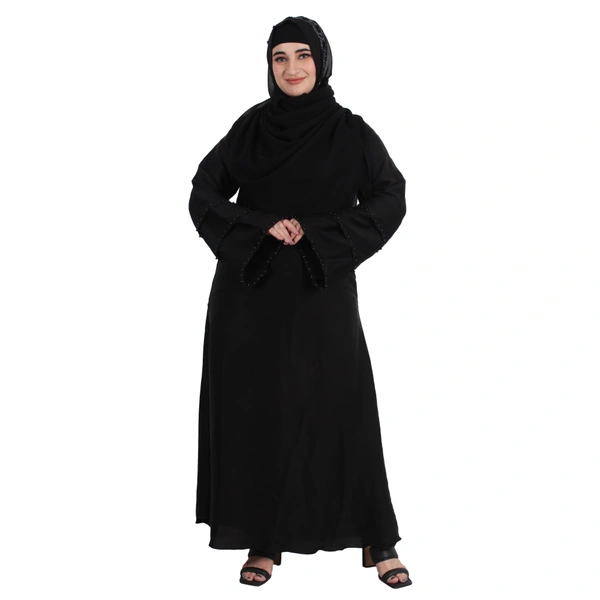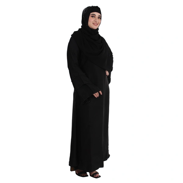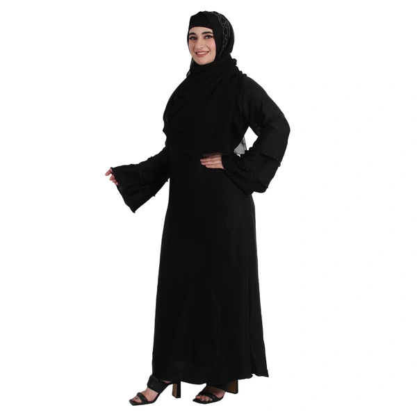Humeira Abaya Dubai Style Simple 3 Layer Sleeves Pearl Work Abaya in Al Nida Fabric