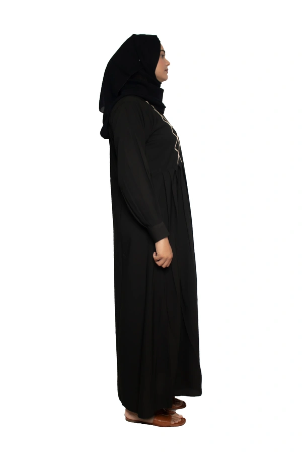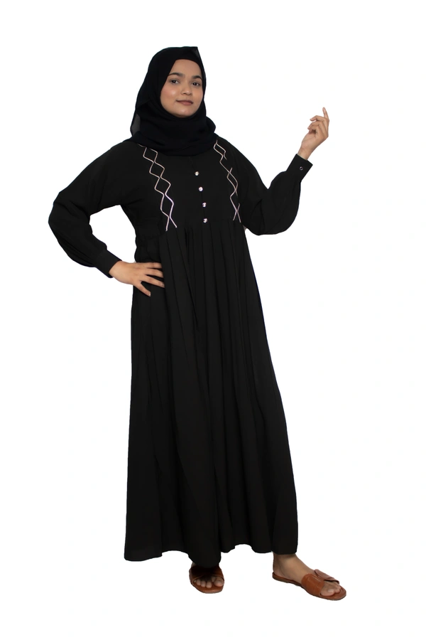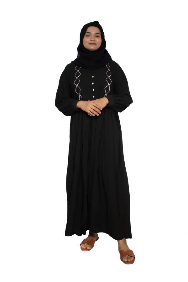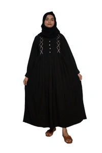 Humeira Abaya Dubai Style Simple Abaya Burkha in Al Nida Fabric Squar Pipen Black