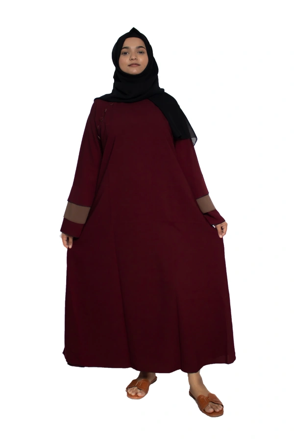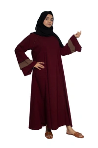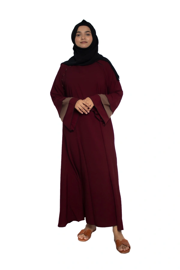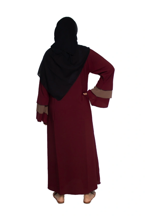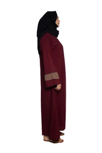 Humeira Abaya Dubai Style Simple Abaya Burkha in Firdous Fabric 6 BTN Maroon 3 Layer