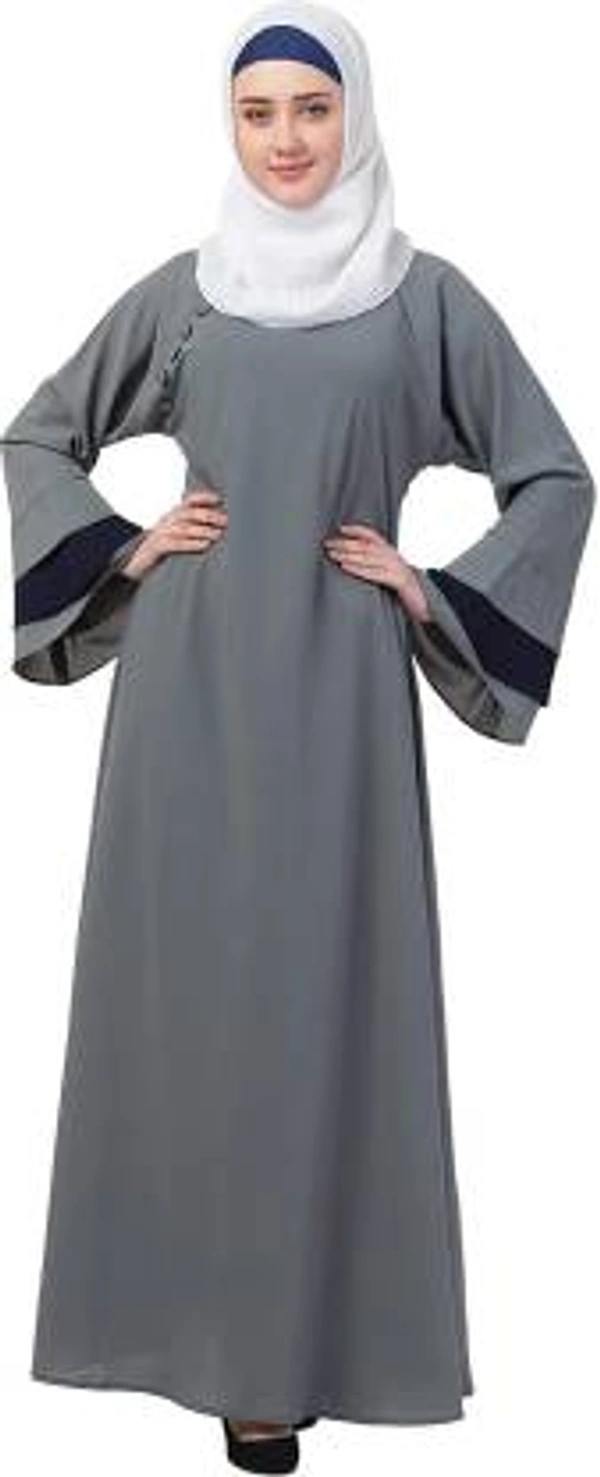 Humeira Abaya Dubai Style Simple Abaya Burkha in Firdous Fabric HA02DP 3 LAYER SLEEVES NECK BUTTON GREY