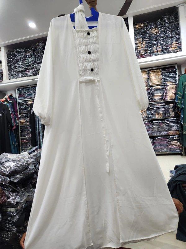 Humeira Abaya Dubai Style Simple Abaya Burkha in Premium Crush Fabric HA25DP WHITE