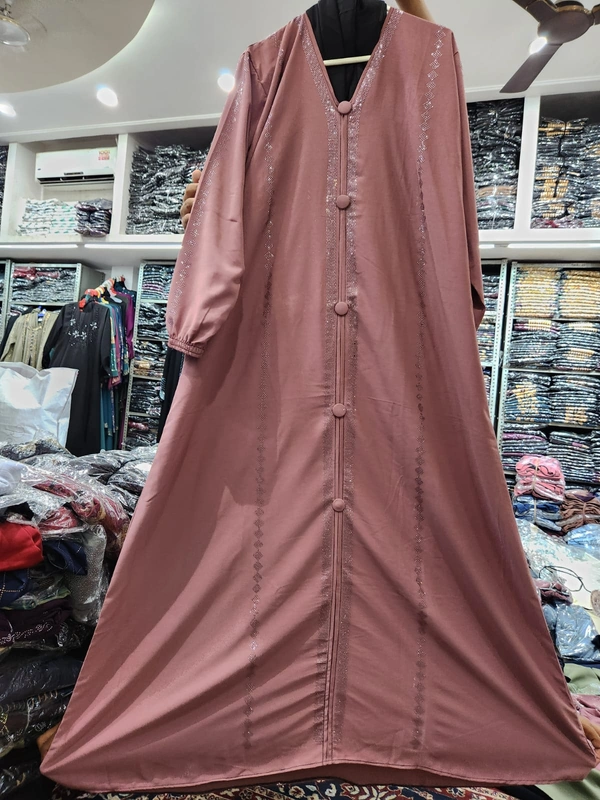 Humeira Abaya Dubai Style Stone Work Abaya Burkha in Al Nida Fabric HA34DP PINK