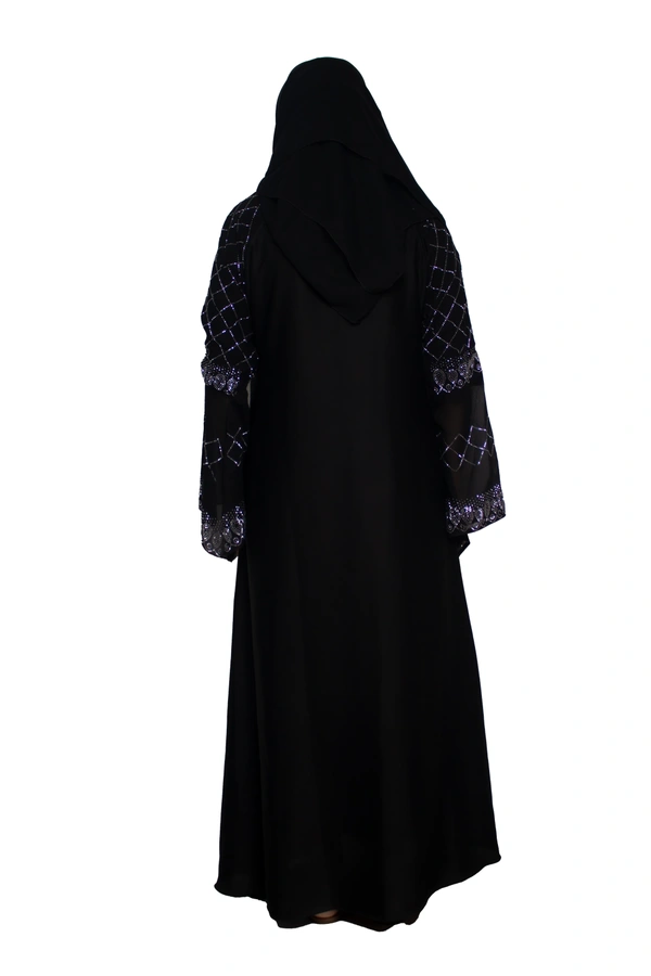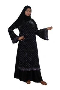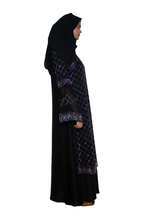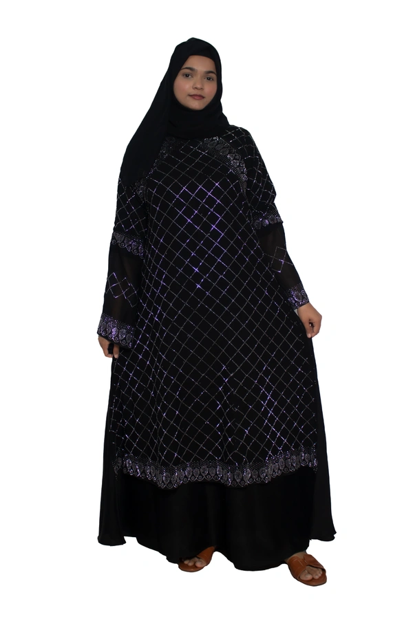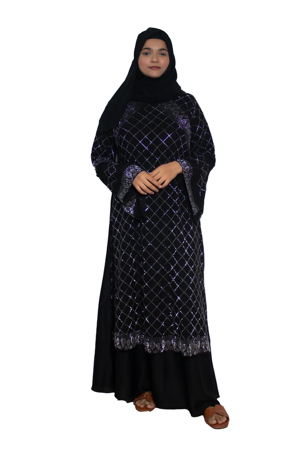 Humeira Abaya Dubai Style Stone Work Abaya Burkha in Al Nida Fabric Heavy Squar Stone Work Black