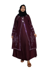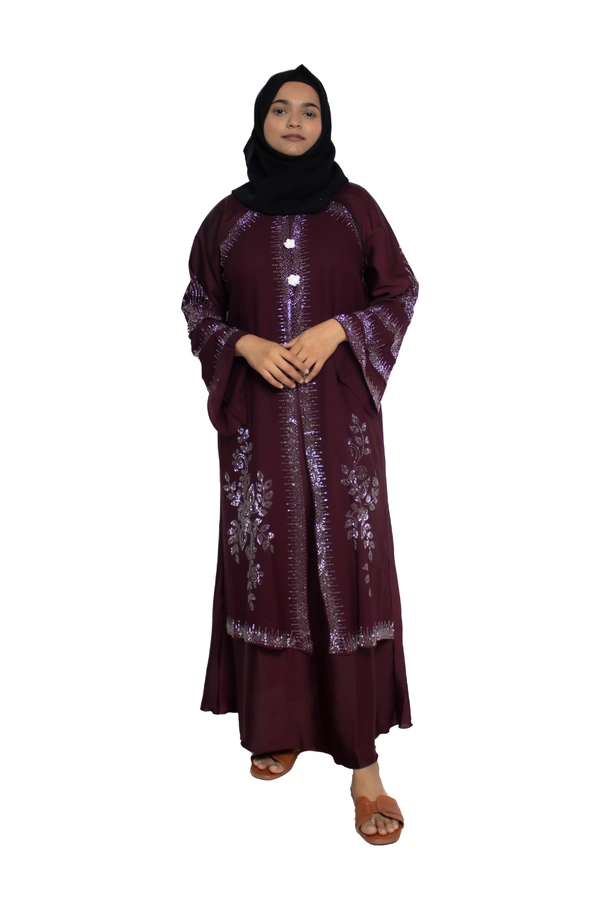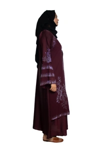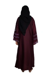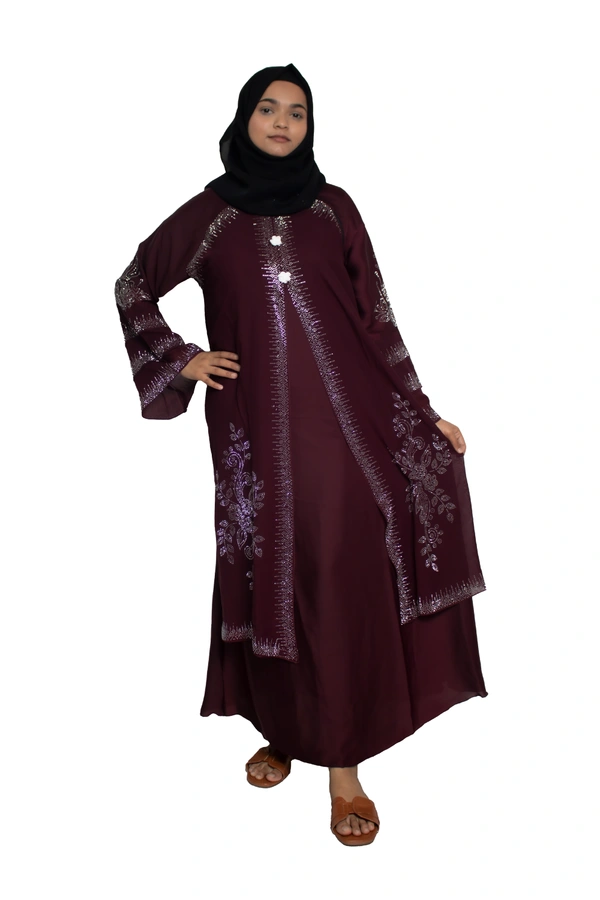 Humeira Abaya Dubai Style Stone Work Abaya Burkha in Al Nida Fabric Kranti Maroon