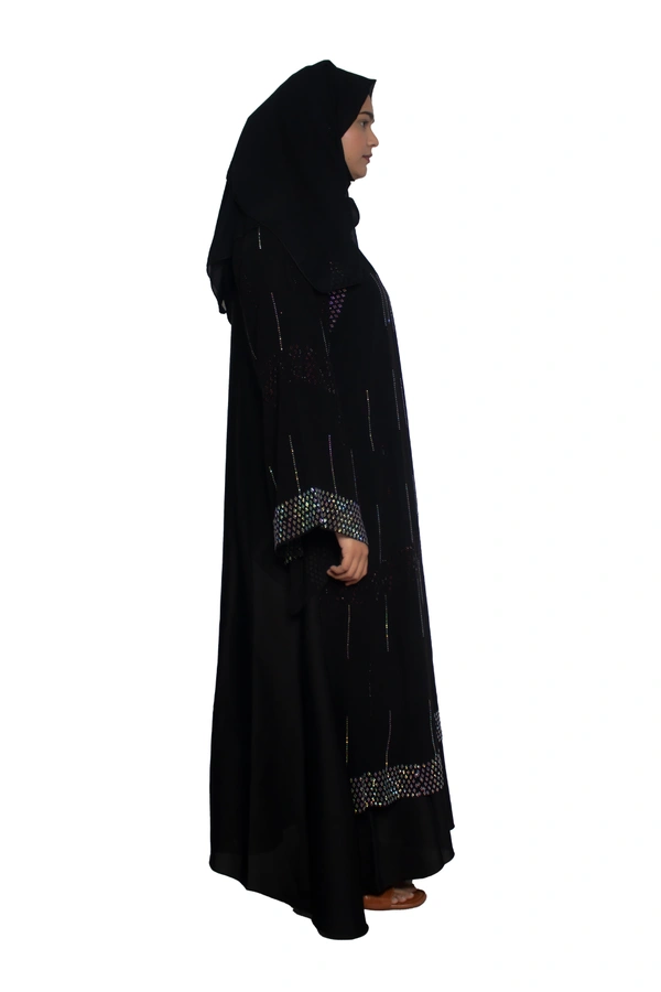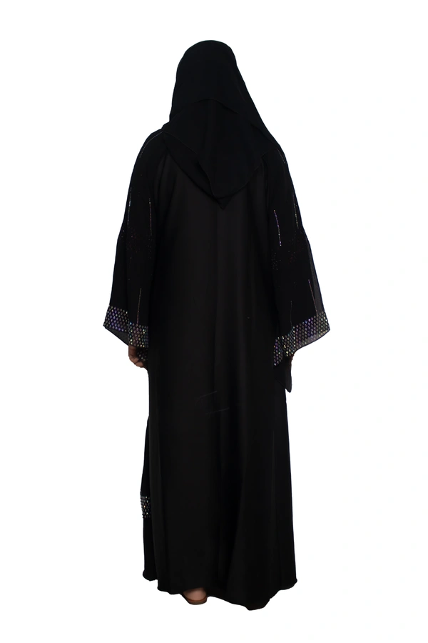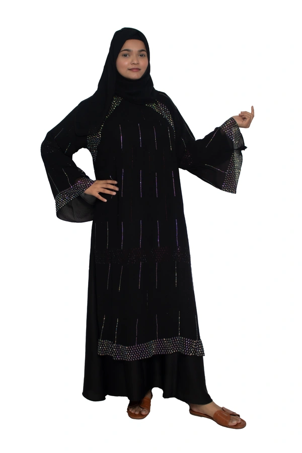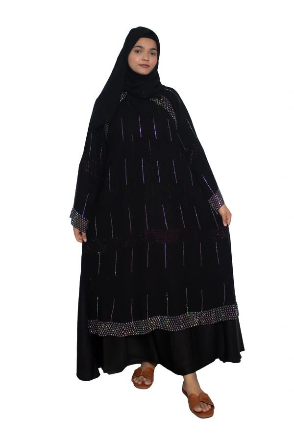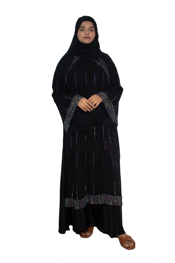 Humeira Abaya Dubai Style Stone Work Abaya Burkha in Al Nida Fabric Line Stone Double Palla Heavy