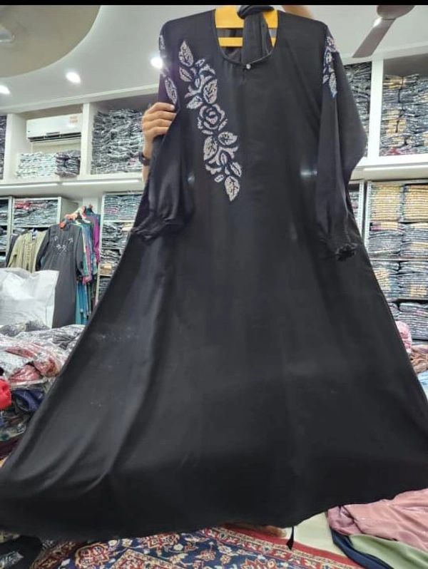 Humeira Abaya Dubai Style Stone Work Abaya Burkha in Premium Crush Fabric HA32DP BLACK