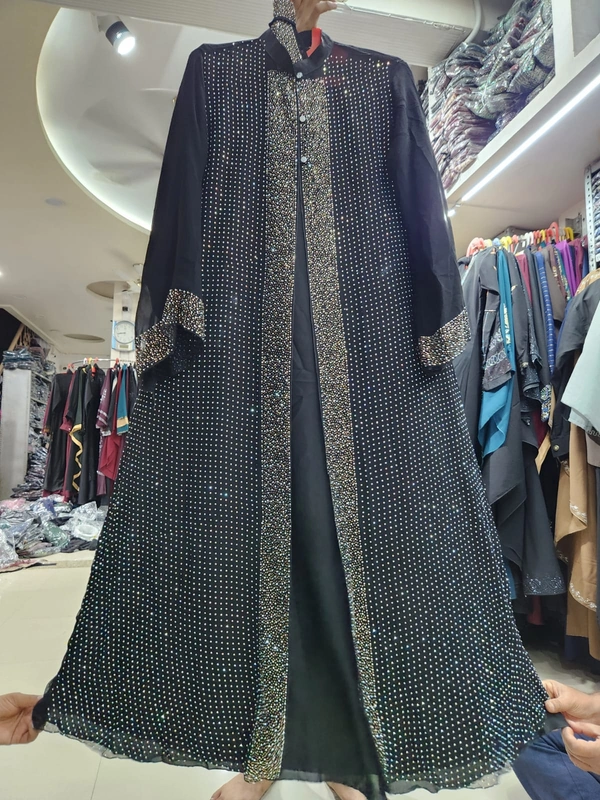 Humeira Abaya Dubai Style Stone Work Abaya Shrug in Al Nida Fabric HA36DP BLACK