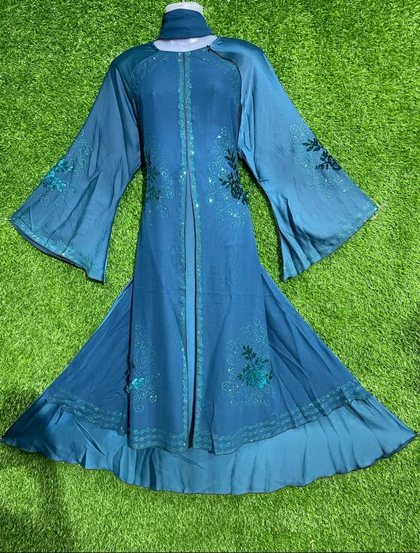 Humeira Abaya Firzoi Color Shirag Abaya With Sehnil Phool Style in Al Nida Fabric