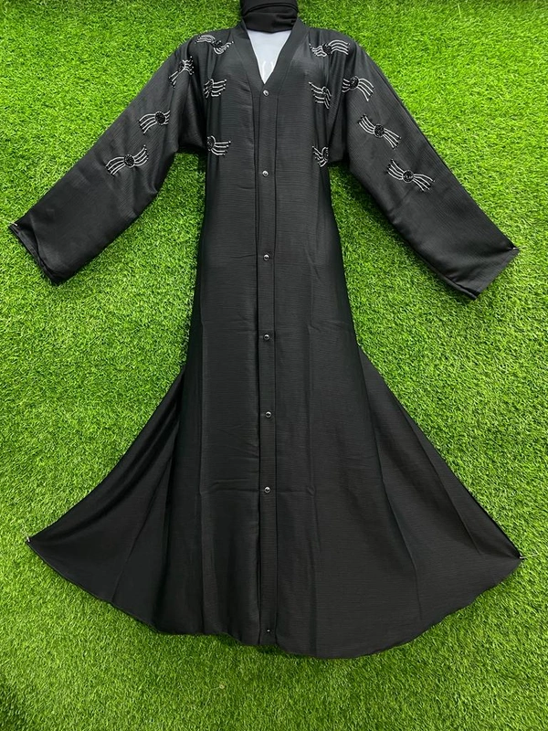 Humeira Abaya Front Open Premium Hand Worked Abaya in Al Nida Fabric With Small Laher Style