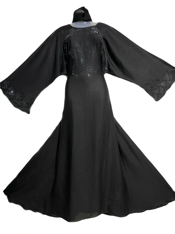 Humeira Dubai Style Black Color Silli Abaya in Stone Work Buta