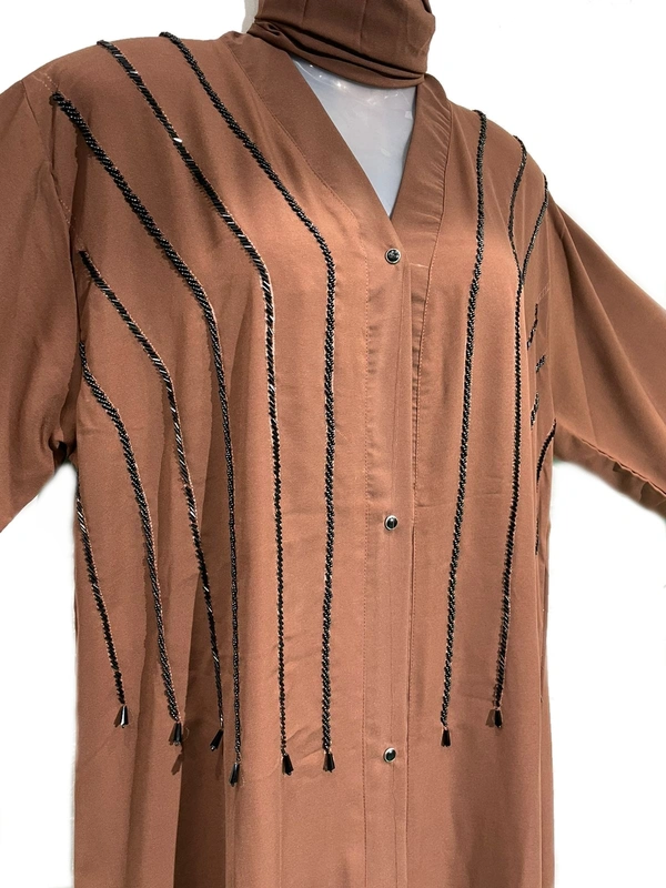 Humeira Dubai Style Neck Handwork Premium Brown Color Front Open Abaya