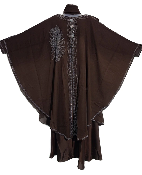 Humeira Dubai Style Simple PP Stone Work Brown Color Farasha in Al NIda Fabric With Back Buta