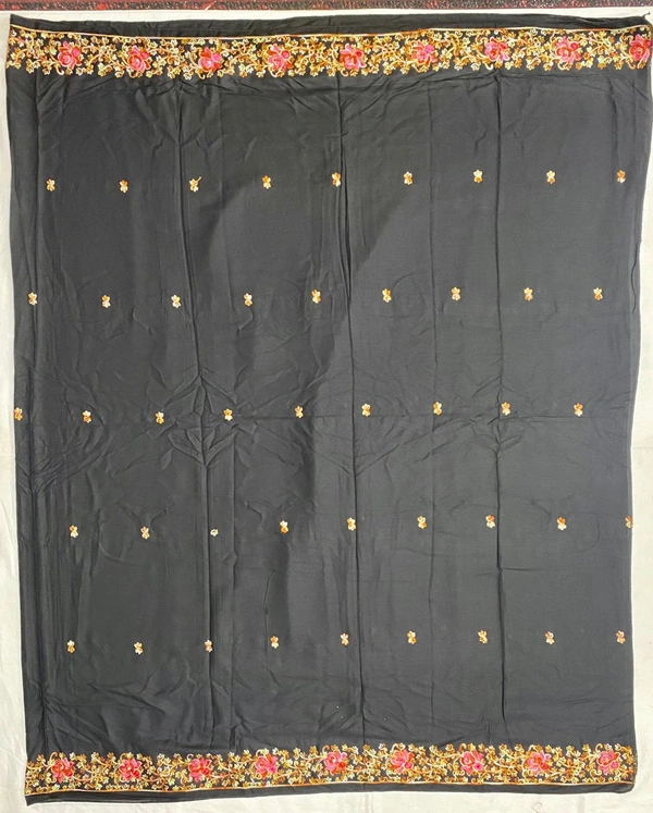 India Style Shahi Boader Chadar in Black Color With Golden Work Embroidery