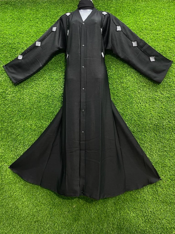 Humeira Abaya Indian Traditional Premium Simple Front Open Squar Type Hand Work Burkha in Al Nida Fabric