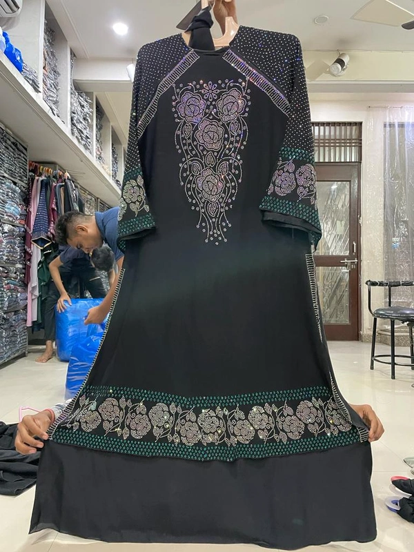 Stone Work Abaya Burkha in Al Nida Fabric HA115DP BLACK