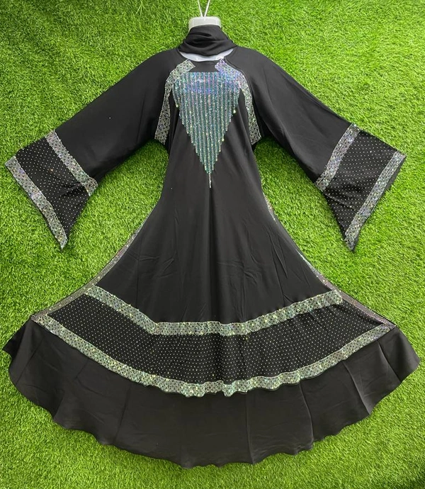 Stone Work Abaya Burkha in Al Nida Fabric HA116DP BLACK