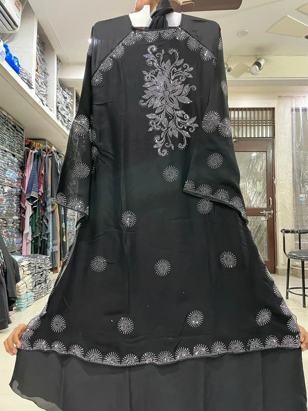 Humeira Abaya Traditional Stone Work Abaya Burkha in Al Nida Fabric HA107DP BLACK