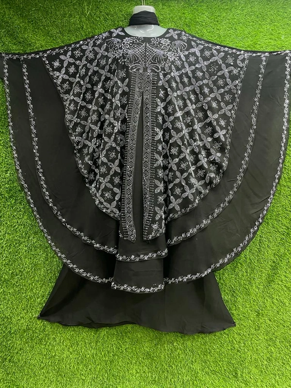 Humeira Abaya Traditional Stone Work Abaya Burkha in Al Nida Fabric HA73DP BLACK