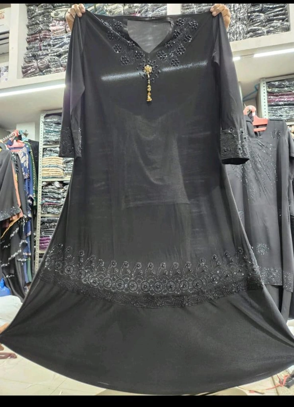 Humeira Abaya Traditional Stone Work Abaya Burkha in cristal Fabric HA50DP BLACK