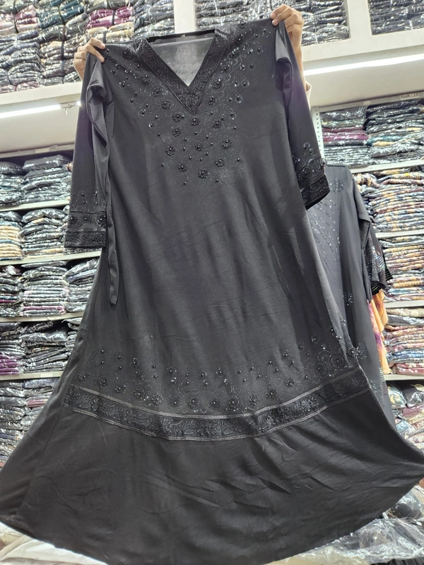 Humeira Abaya Traditional Stone Work Abaya Burkha in cristal Fabric HA53DP BLACK