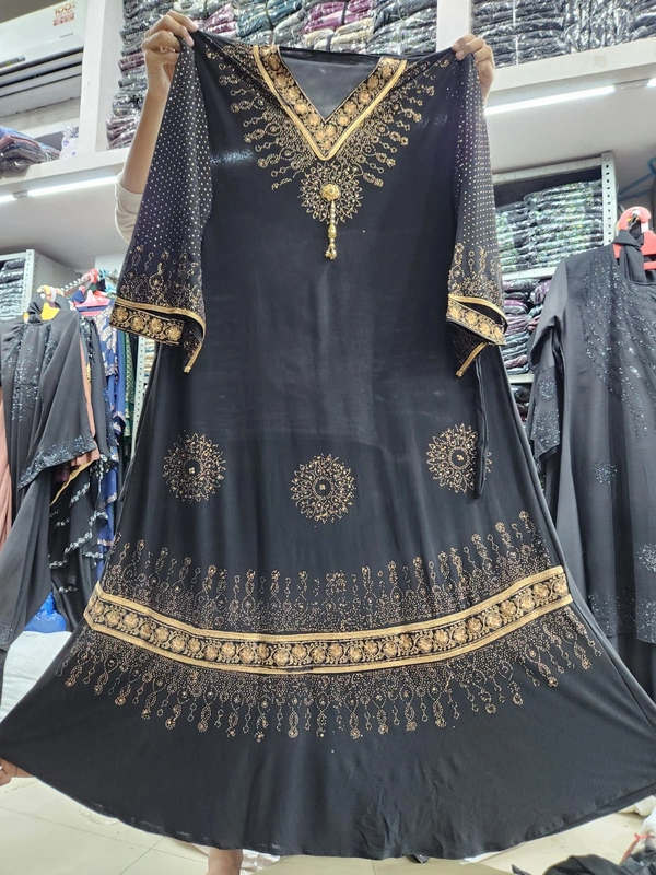 Humeira Abaya Traditional Stone Work Abaya Burkha in cristal Fabric HA55DP BLACK