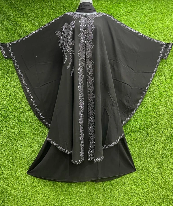 Humeira Abaya Traditional Stone Work Abaya Burkha in Diamond Geogette Fabric HA101DP BLACK