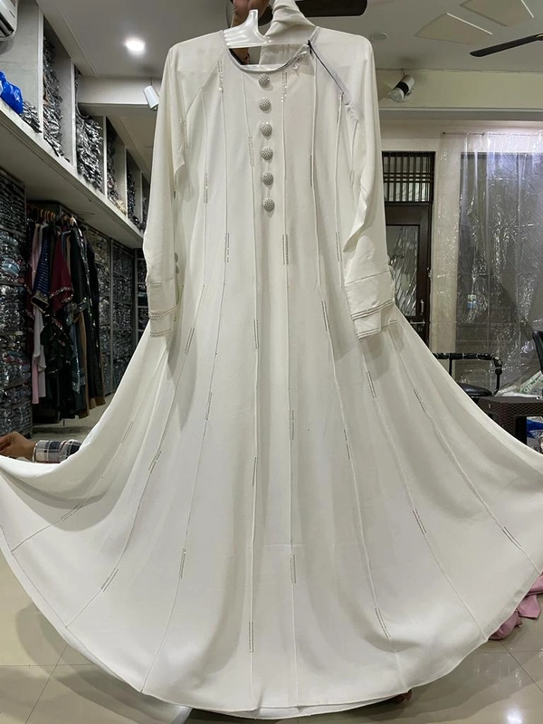 Traditional Stone Work Abaya Burkha in Premium Crush Fabric HA111DP WHITE