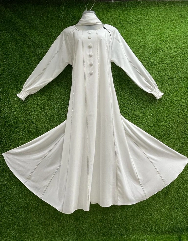 Humeira Abaya Traditional Stone Work Abaya Burkha in Premium Crush Fabric HA91DP WHITE