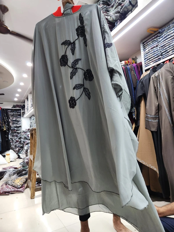 Humeira Abaya Traditional Stone Work Abaya Farasha in Diamond Geogette Fabric HA44DP GREY